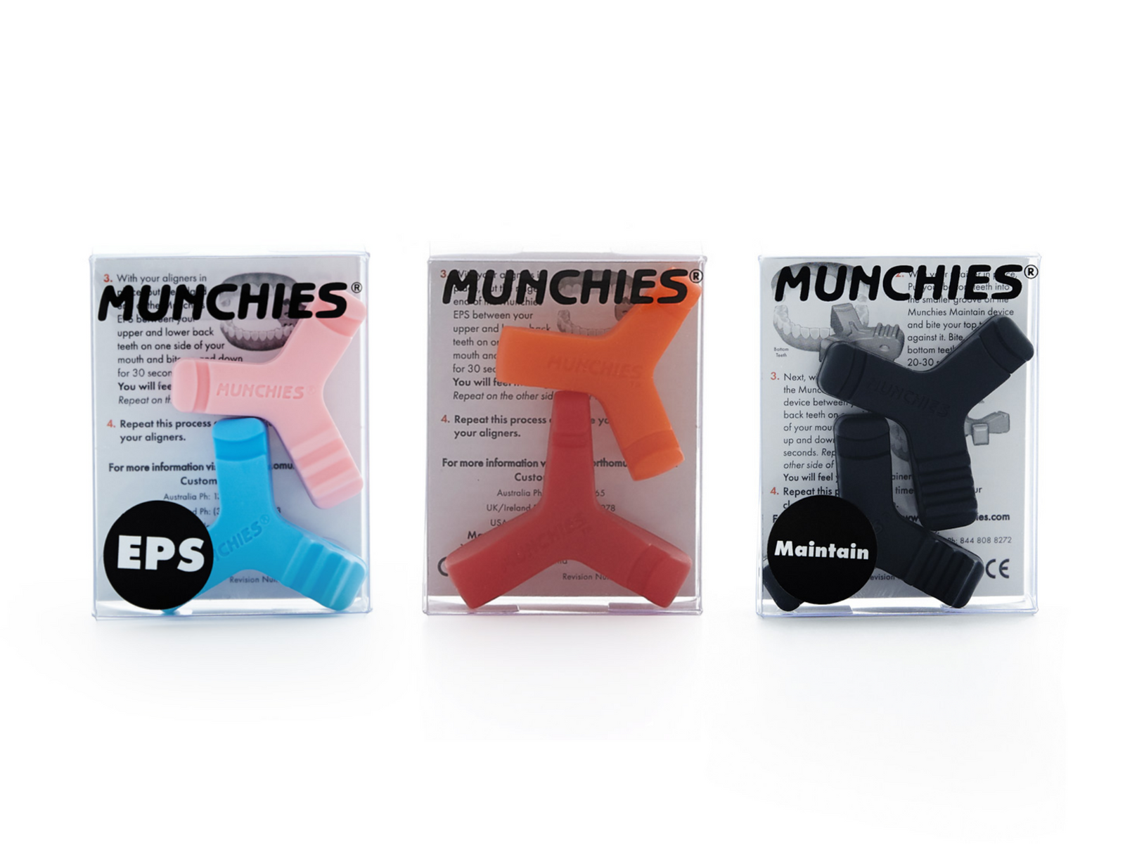 Munchies® devices are used to optimise the seating of orthodontic clear aligners and retainers. They ensure that orthodontic forces are delivered accurately and that tooth movements occur as predictably and comfortably as possible. Learn more